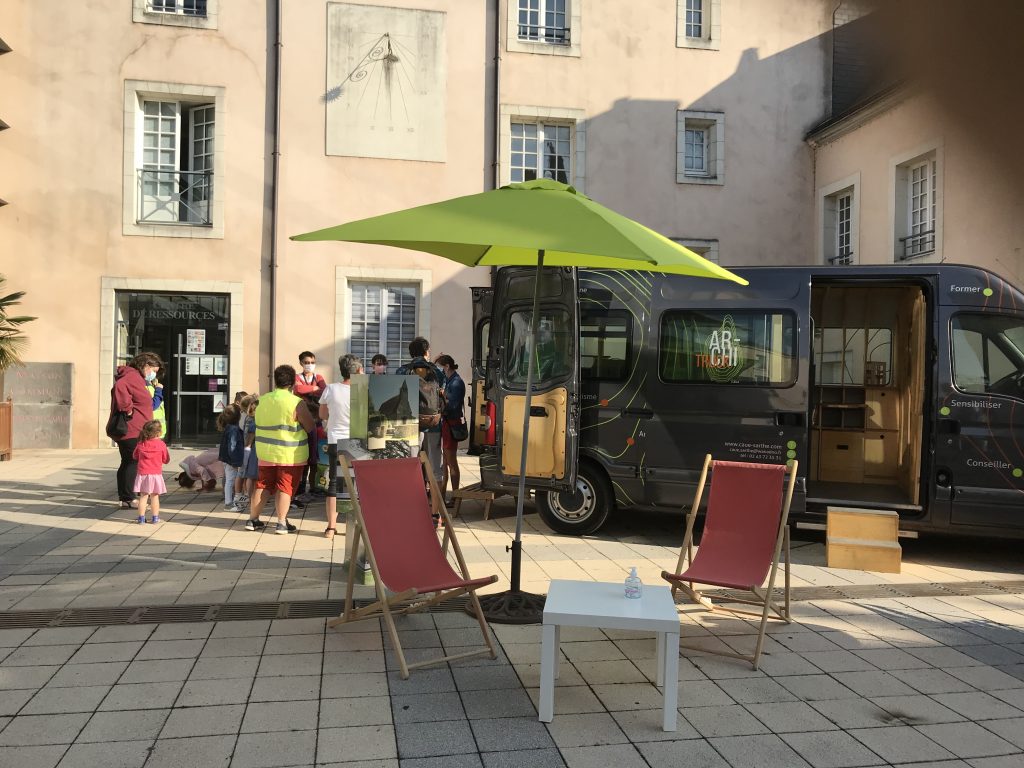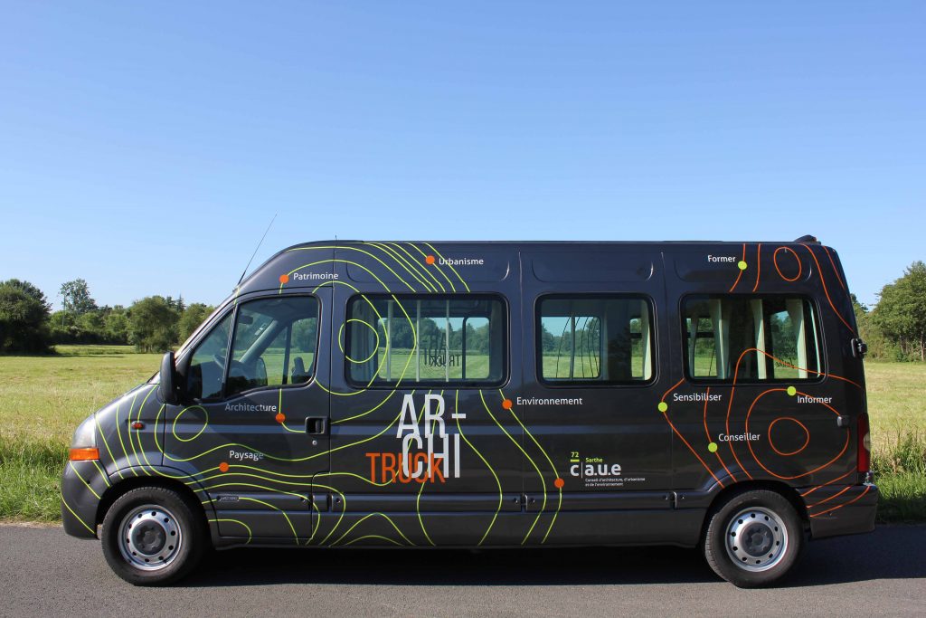 Imaginé pour nos 40 ans, l’ArchiTruck est le minibus du CAUE de la Sarthe. Il nous permet de venir chaque année à votre rencontre, sur tout le territoire sarthois. Innovant, attrayant et accessible, notre ArchiTruck est un formidable outil pour sensibiliser et informer tous les publics sur nos thématiques : l’architecture, le paysage, l’environnement, l’urbanisme et le patrimoine. Agile et mobile, il nous permet d’aller au plus près, sur les routes de Sarthe, dans les bourgs ou dans les écoles, pour favoriser les échanges avec les habitant·es et susciter des vocations auprès des plus jeunes.